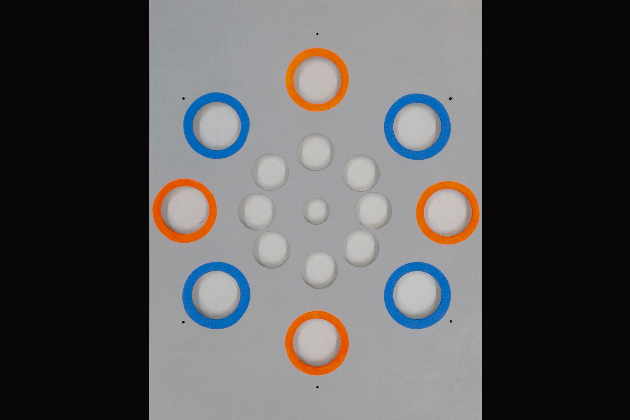 (Orange, Blue on Grey) acrylic on MDF 41x51 Nov 2017